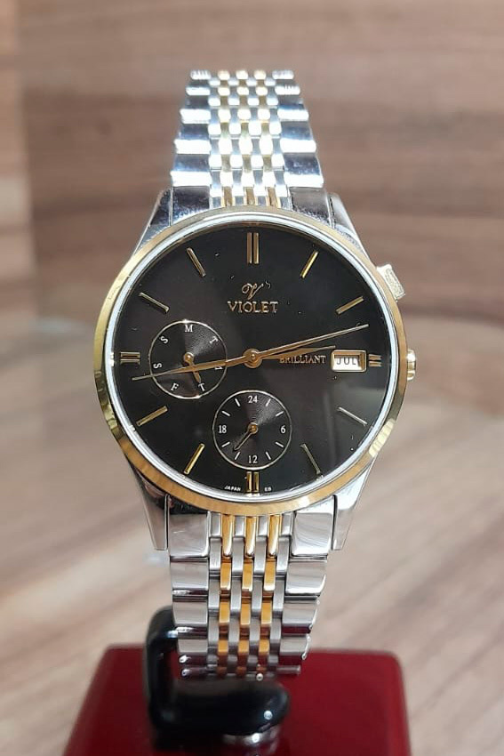 Корпус: Корпус выполнен из высококачественной стали с повышенной устойчивостью к коррозии, поверхность с полировкой до зеркального блеска и IP -покрытием. Чёрный циферблат. Накладные часовые индексы и стрелки выполнены из стали с позолотой. Прочное минеральное стекло обеспечит защиту часов от повреждений. Диаметр корпуса часов: 36 мм. Водостойкость: WR 50 (мытье рук, дождь).