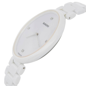 Корпус: Высокотехнологичная керамика. Сапфировое стекло. Размер 33х42 мм, водонепроницаемость 30 метров. Циферблат светлый. 4 бриллианта.
