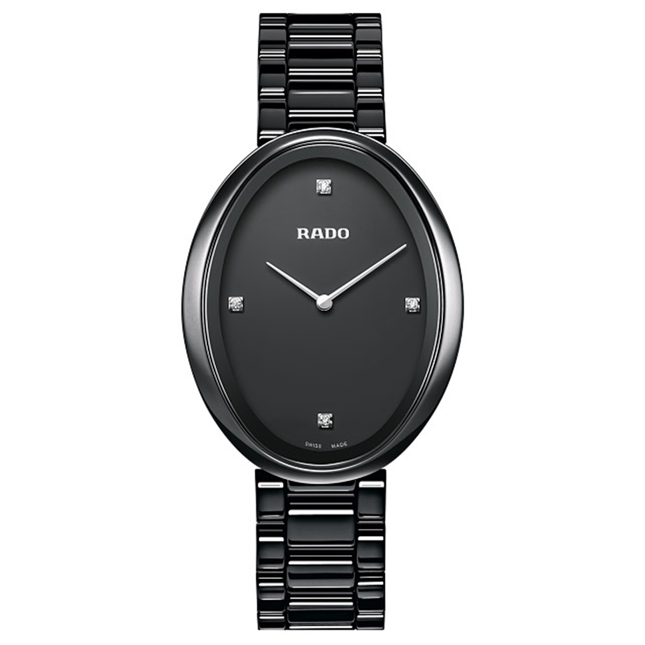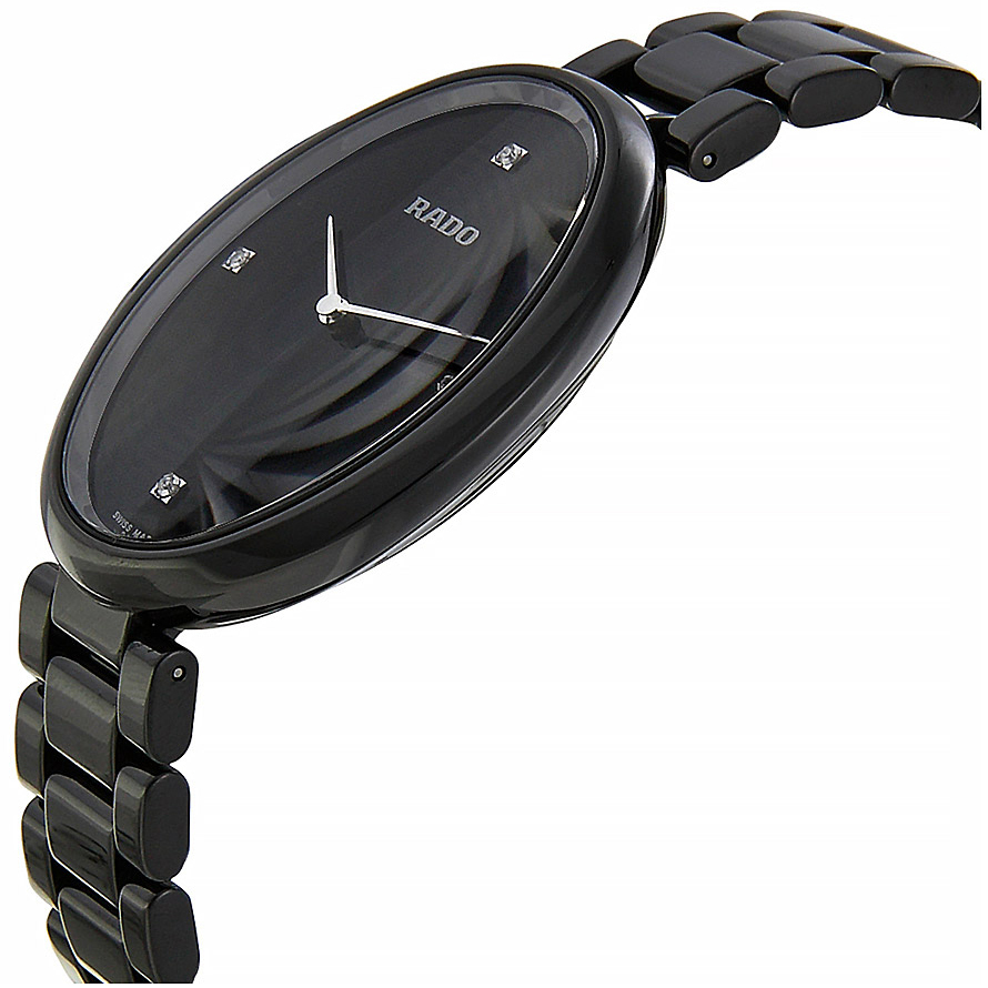 Корпус: Высокотехнологичная керамика. Сапфировое стекло. Размер 33х42 мм, водонепроницаемость 30 метров. Циферблат черный. 4 бриллианта.