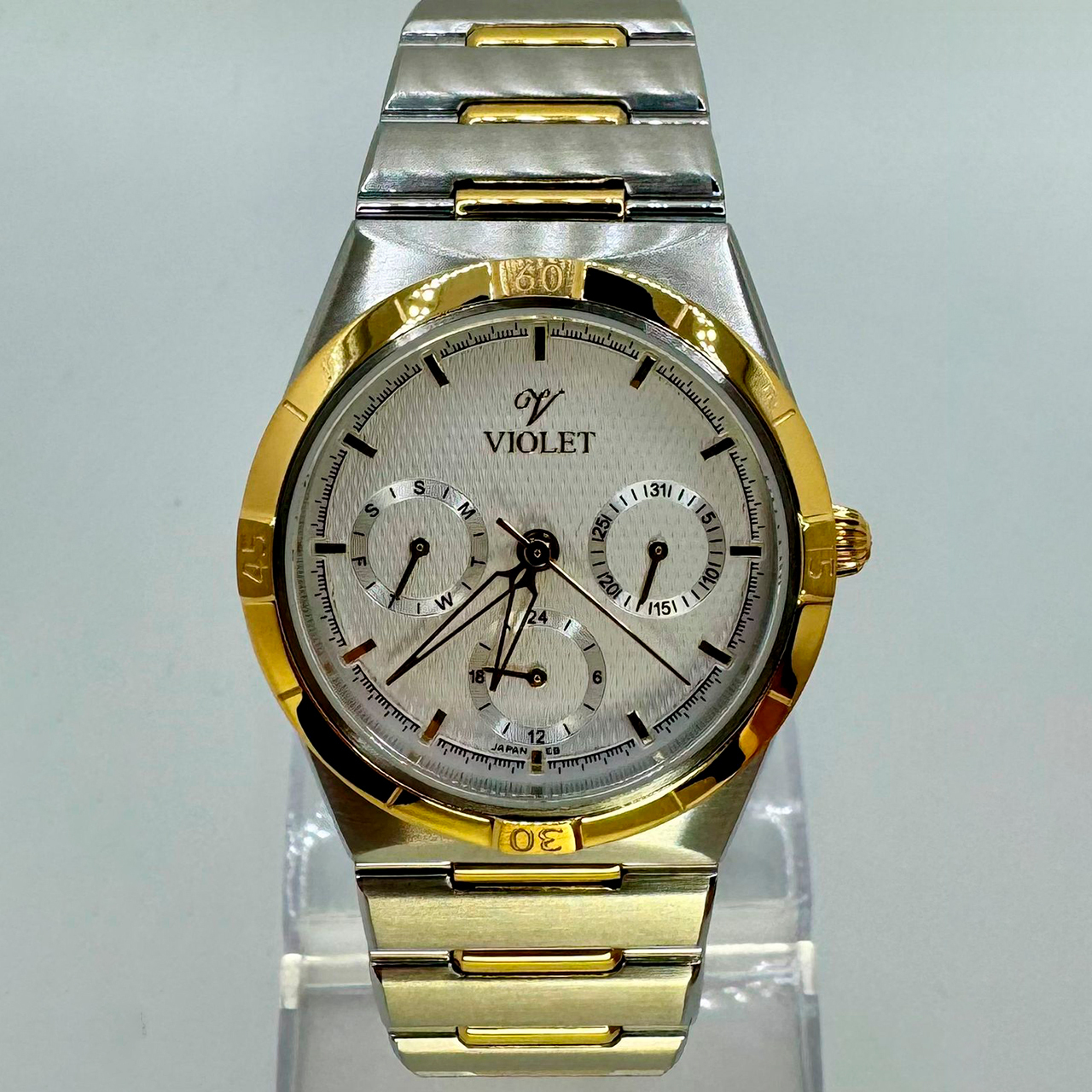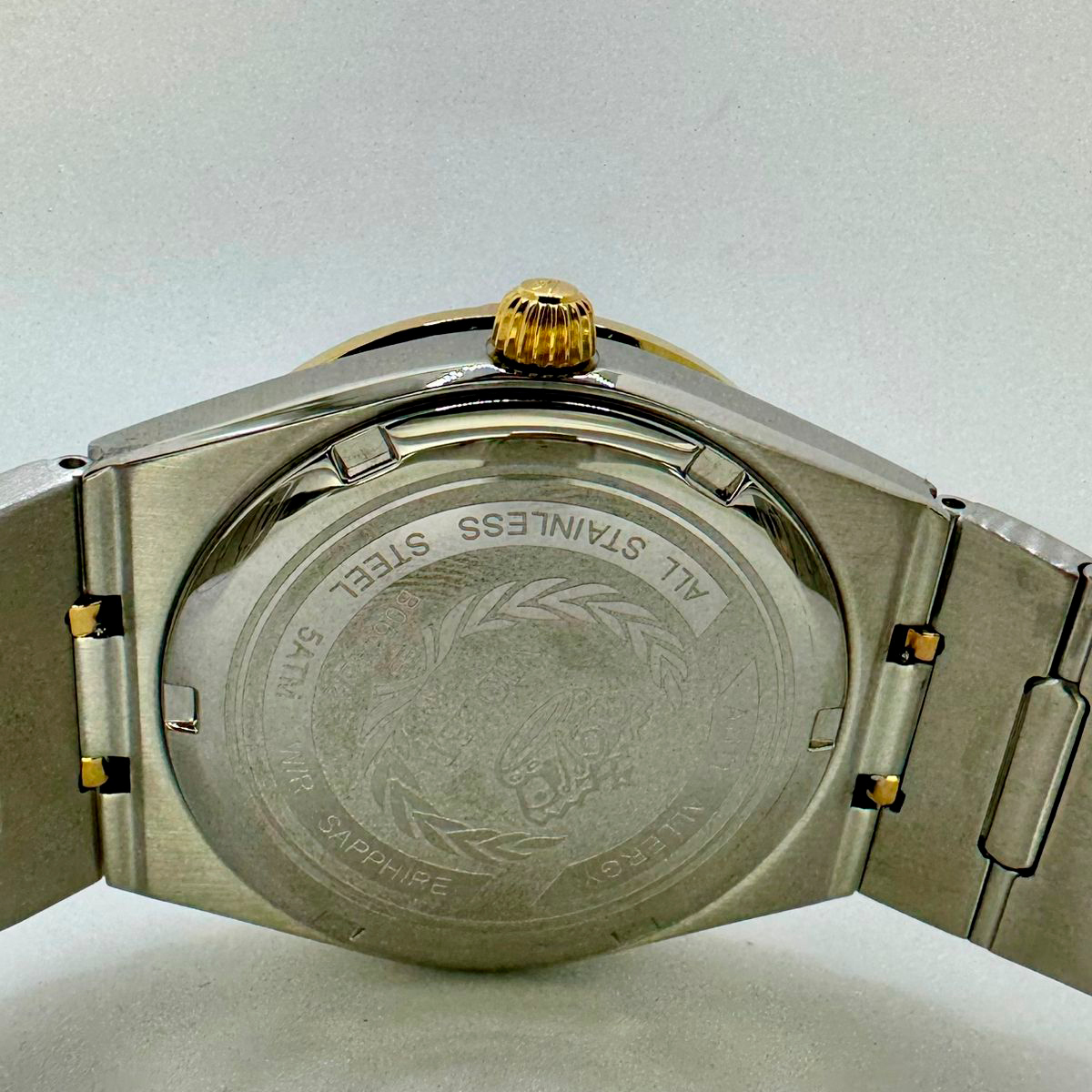 Ремешок: Браслет выполнен из высококачественной стали с повышенной устойчивостью к коррозии, поверхность с матовой шлифовкой – сатинированием и полировкой до зеркального блеска с частичным IP -покрытием. Раскладывающаяся застежка с кнопочной фиксацией.