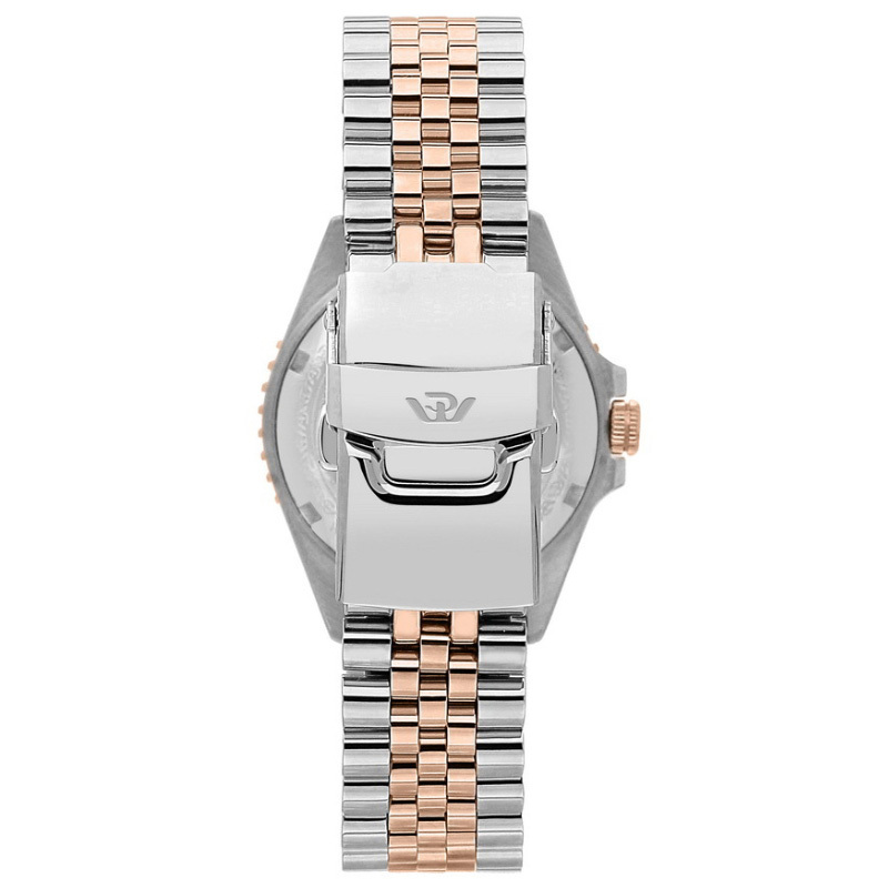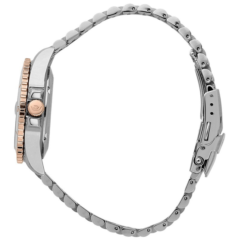 Ремешок: Браслет выполнен из высококачественной стали с повышенной устойчивостью к коррозии, с частичным PVD покрытием и раскладывающейся застежкой на фиксации.