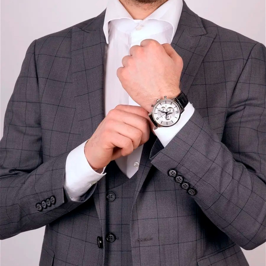 Ремешок: Кожаный ремешок чёрного цвета с классической застежкой.