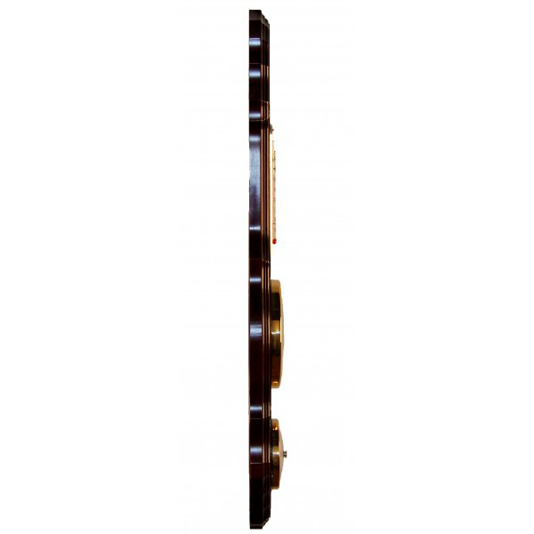 Описание: Метеостанция настенная: барометр, часы, гигрометр и термометр от российской компании "Бриг+", предназначена для измерения атмосферного давления, влажности в помещении, температуры в помещении. Корпус изготовлен из высококачественного массива дерева темно-коричневого цвета, а металлическая фурнитура изготавливается только из полнотелой латуни. Размер 140 x 515 x 70 мм. Использованы механизмы производства Германии, диаметр барометра 48 мм, часов 108 мм, длина термометра 125 мм.