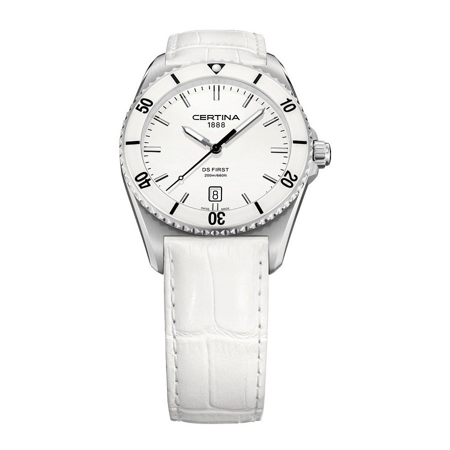Корпус: Корпус из нержавеющей полированной/матовой стали. Безель с 60 - минутной шкалой на керамическом белом кольце. Белый циферблат. Стрелки и часовые индексы серебристого цвета. Сапфировое стекло с антибликовым покрытием. Диаметр 41 мм. Водостойкость 200 м. Система DS.