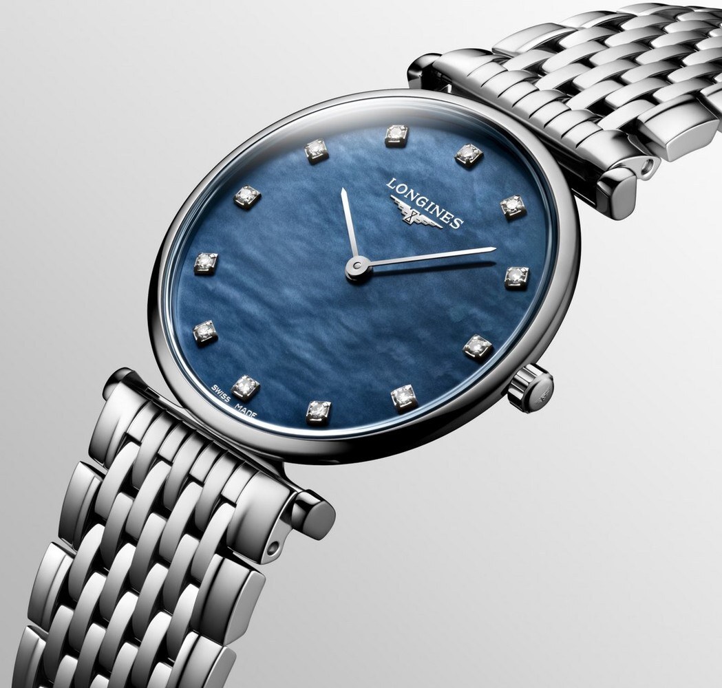 Корпус: Круглый эргономичный корпус выполнен из нержавеющей стали, поверхности с финишной глянцевой полировкой. Циферблат перламутровый синего цвета, инкрустирован 12 бриллиантами, стрелки имеют серебристое покрытие и полировку. Сапфировое стекло устойчивое к возникновению царапин. Диаметр корпуса составляет 29 мм, толщина - 4.5 мм. Водостойкость 3 бар.