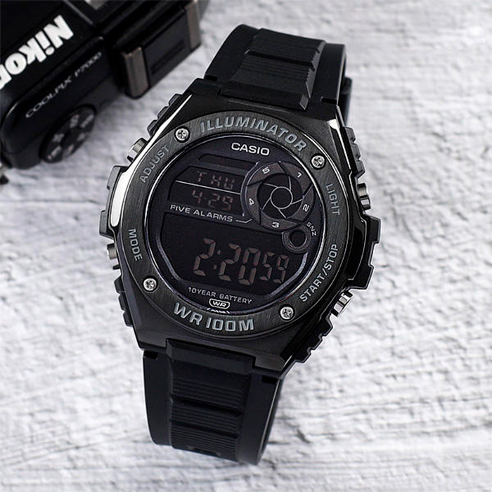 Функции: Электронный ЖК дисплей. Часы, минуты, секунды, pm, месяц, дата, день недели. Хронограф, таймер, мировое время, 12/24-часовое отображение времени, автоматический календарь. Почасовой сигнал времени, 5 многофункциональных будильников (с повтором будильника).