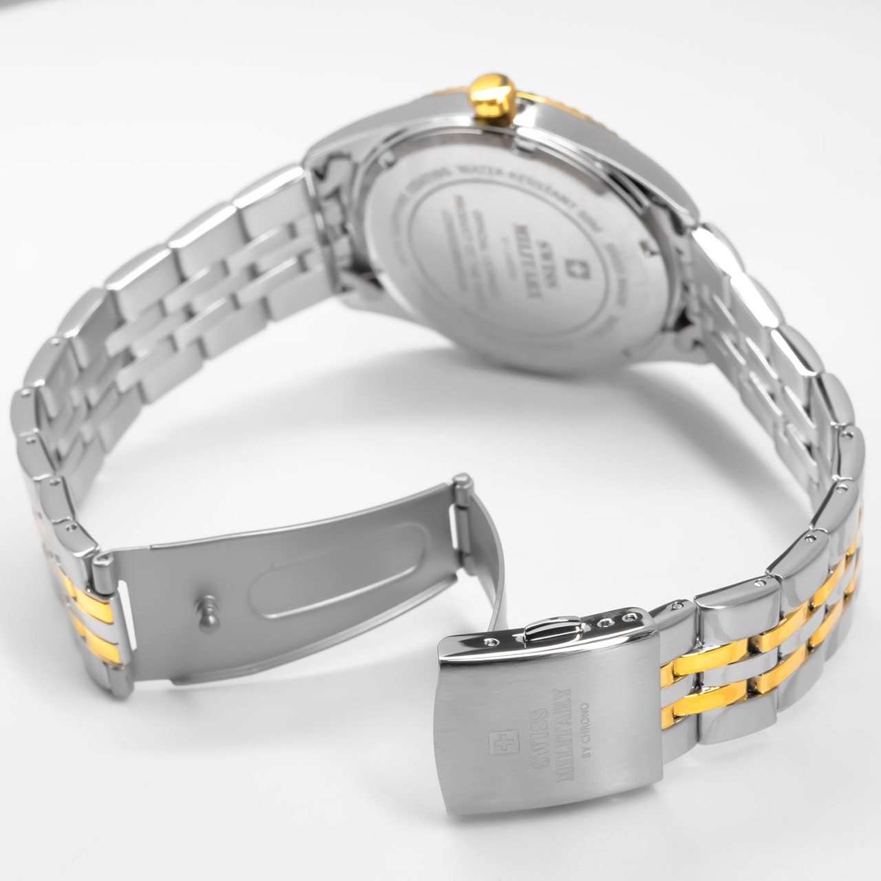 Ремешок: Браслет из нержавеющей стали с частичным PVD покрытием цвета желтого золота, с раскладывающейся застежкой.