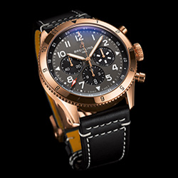 Одна из особенностей моделей из серии Super AVI – крупные, прекрасно читаемые арабские цифры на циферблате и безеле. На массивном корпусе диаметром 46 мм напротив метки «3 часа» выделяется крупная заводная головка. Рифление на безеле обеспечивает надежный захват, а отстрочка на ремешках из телячьей кожи напоминает отделку старинного летного снаряжения.