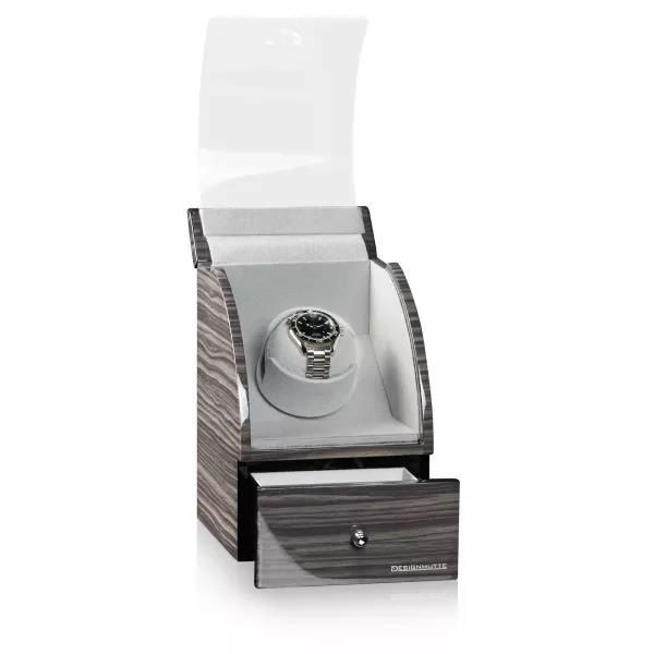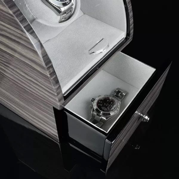 Эта модель рассчитана на одну автоматическую модель и оснащена индивидуальными программами вращения, благодаря которым можно выбрать оптимальный режим для практически любого механизма. Компактные габариты, бархатистая внутренняя отделка и прозрачное смотровое окно позволяют не только бережно хранить часы, но и наслаждаться их видом.
