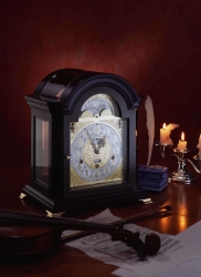 Часы оснащены механизмом (на 12 рубинах и 8 подшипниках) с тросовым приводом, двумя никелированными гирями и большим серебристым круглым маятником на специальной длинной подвеске. Запас хода механизма – восемь дней. Через каждые полчаса скрытый гонг часов воспроизводит бой.