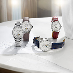 Столпами дизайна коллекции The Longines Master Collection стали элегантность, лаконичность и строгий стиль — идеальное сочетание для тех, кто во всем предпочитает быть на высоте. В часах используется широкий спектр функций: часовая, минутная, секундная стрелки и индикатор даты, хронограф, запас хода, ретроградный и годовой календарь. Кроме того, в часы встроен указатель фаз Луны, впервые представленный два года назад в мужской версии и являющийся отличительной особенностью новой модели 2021 года. Уместить его в корпус диаметром 34 мм было непростой задачей. Но в итоге часовым мастерам удалось достичь любимого женщинами сочетания функциональности и элегантности. Дамам также придется по вкусу широкий выбор ремешков и циферблатов в коллекции The Longines Master Collection.