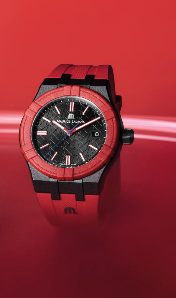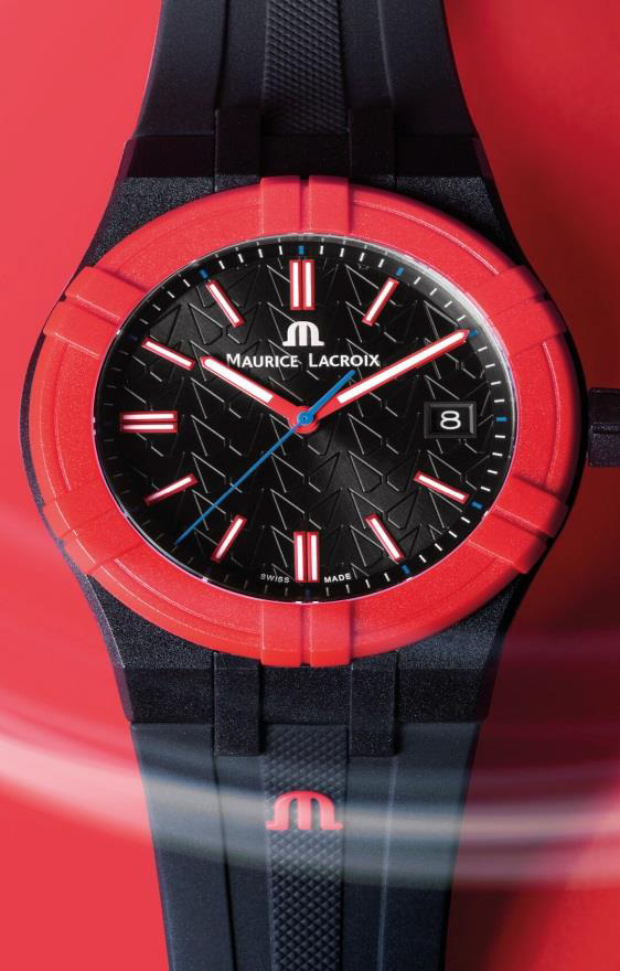 Теперь две заботящиеся об окружающей среде фирмы объединили усилия, кульминацией которых стал выпуск новых часов AIKON #tide Mahindra, выполненных в цветах гоночной команды и украшенных циферблатом с логотипом команды. Увековечивая историю #tide, эта новая модель снова изготовлена из переработанного океаном пластика. Он оснащен черным циферблатом и соответствующим 40-миллиметровым корпусом. Безель выполнен в красном цвете, а на черном каучуковом ремешке изображен логотип Maurice Lacroix с буквой «M», также выполненный в ярком красном оттенке. Кроме того, часы поставляются со вторым ремешком – на этот раз из красной резины с черными вставками. Оснащен системой легкой замены ремешков Maison, которая позволяет легко менять один ремешок на другой без использования инструментов.