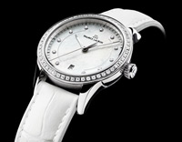 Модель для женщин, напротив, лишний раз подтверждает справедливость правила «чем меньше, тем лучше». Её скромность подчёркивает достаточно простой календарь, гармонично сочетающийся с безупречным дизайном часов, в котором лаконичность преобладает над излишеством: плавные округлые линии корпуса, циферблат с пескоструйной отделкой.