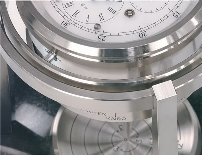 Этим прибором является новейшая модель «Tempus Mobile» с мануфактурным механизмом «Nautis marine clock» и имеющая двухнедельный запас хода. Для создания этого шедевра понадобилось по истине богатое воображение. Мастера мюнхенской мануфактуры учли при изготовлении часов очень важный факт. Дело в том, что все парусные суда находятся в строгом горизонтальном положении только тогда, когда скорость судна немного больше скорости ветра, а курс при этом полностью совпадает с его направлением. Во всех других случаях яхта всегда накренена в ту или иную сторону, в зависимости от расположения парусов.