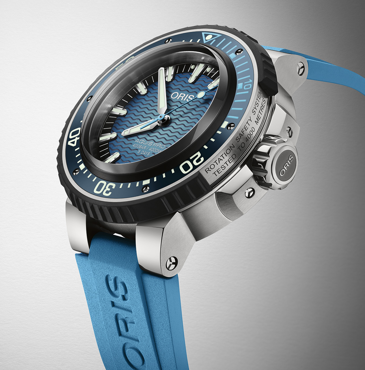 Компания Oris представляет свои самые водонепроницаемые часы для дайверов - AquisPro 4000m. Титановый корпус, способный выдерживать давление до 400 бар (4000 метров), делает их идеальным выбором для профессиональных дайверов. Часы оснащены уникальными технологиями, включая безопасную систему вращения безеля, созданную Oris совместно с экспертами-дайверами, а также инновационную систему регулировки ремешка.