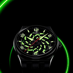 • Циферблат: Технология турбины с 12 лопастями из черного анодированного алюминия, светящиеся спирали Super-LumiNova, светящиеся арабские цифры и индексы