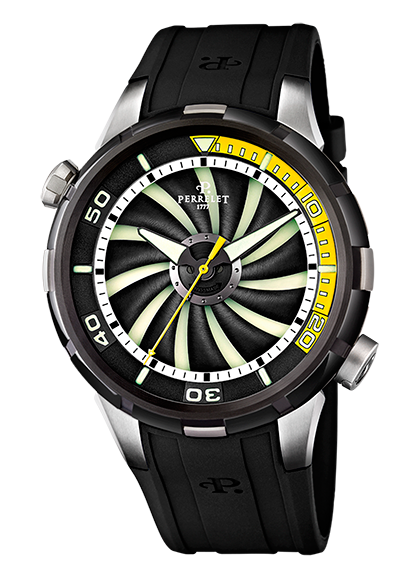 Швейцарская компания «Perrelet» на протяжении последних нескольких лет привлекает к себе внимание моделями часов с использованием технологии «Turbine».* Эта технология имеет два ротора, один из которых расположен на циферблате и своим непредсказуемым направлением быстрого вращения создаёт оригинальный визуально-эстетический эффект. Все часы с декоративным аэродинамическим решением «Turbine» входят в одноимённую коллекцию, которая в настоящее время настолько велика и разнообразна, что, в свою очередь, подразделяется на несколько «семейств» или линий. Две из этих линий – «Yacht» & «Diver» специально созданы для любителей и поклонников яхтенного спорта, а также для опытных и начинающих исследователей океанических и морских глубин. Часы «Yacht» & «Diver» пользуются невероятной популярностью, которая стимулирует специалистов Perrelet достаточно часто осуществлять дизайнерские и технические обновления моделей указанных линий.