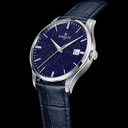 - Циферблат: Синий авантюрин, серебристые метки и стрелки Dauphine, дата в положении «3 часа»