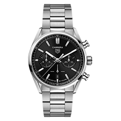Изысканность новой версии TAG Heuer Carrera подчеркивает лаконичный безель из нержавеющей стали. У него отсутствует тахиметрическая шкала, чтобы передать эстетику легендарных Heuer Carrera с серебристым циферблатом, которые впервые выпущены в 1963 году. Корпус часов диаметром 42 мм оснащен кнопками и дополнительными счетчиками на циферблате – свидетельство того, что новые часы обладают функцией хронографа. Независимо от цветового решения циферблата (он может быть в матово-черном или синем, темно-сером либо серебристом цвете с эффектом sunray) в положениях «3 часа» и «9 часов» расположены дополнительные счетчики, декорированные в технике azurage. Над небольшим окошком даты в положении «6 часов» установлен малый постоянный счетчик секунд. Пульсирующим сердцем этого классического хронографа TAG Heuer Carrera стал фирменный механизм Calibre Heuer 02.