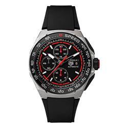 Контрастная красная шкала, люминесцентные стрелки и индексы гарантируют превосходную читаемость даже при минимальном освещении, а безель с тахиметрической шкалой и вставкой из алюминия говорит о глубокой связи TAG Heuer с миром автоспорта. Надёжный корпус с матовыми кнопками и завинчивающейся заводной головкой обеспечивает защиту в самых требовательных условиях. Прочный каучуковый ремешок завершает образ часов, которые не боятся скорости и времени.