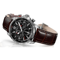 Функции: Индикация часов, минут при помощи центральных стрелок. Окошко даты на "6 часов". Хронограф. Счётчик 12 -ти часов расположен в положении " 10 часов", 30-минутный счётчик на " 2 часа", малая секундная стрелка на "6 часов".
