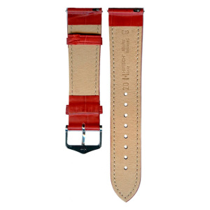 Описание: Великолепный матовый ремешок из прочной итальянской телячьей кожи с тиснением, имитирующим кожу луизианского аллигатора. Особый технологический процесс позволяет HIRSCH создавать на телячьей коже точное тиснение узора, характерного для кожи аллигатора. Для достижения результата кроме самого тиснения используется специальная предварительная окраска кожи. Гармоничная набивка. Тонкая строчка тон в тон. Мягкая кожа Softglove для подкладки обеспечивает комфорт при носке и защищает кожу от излишней влажности и пота. Цвет - красный.