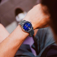 Корпус: Корпус модели выполнен из высококачественной стали марки 316L с повышенной устойчивостью к коррозии, поверхности с матовой шлифовкой – сатинированием и полировкой до зеркального блеска. Циферблат глубокого синего цвета с шлифовкой “солнечные лучи”, аппликация часовых индексов и стрелки с огранкой. Сапфировое стекло с антибликовым покрытием. Диаметр: 41 мм. Водонепроницаемость: 100 м.