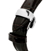 Ремешок: Коричневый ремень из кожи с раскладывающейся застёжкой.