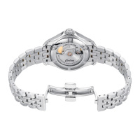 Корпус: Корпус модели выполнен из высококачественной стали марки 316L с повышенной устойчивостью к коррозии, поверхности с матовой шлифовкой – сатинированием и полировкой до зеркального блеска. Голубой циферблат украшен 8 бриллиантами цвета Top Wesselton. Одностороннее антибликовое покрытие сапфирового стекла. Прозрачная задняя крышка. Диаметр: 34,5 мм. Водостойкость: 200 м.