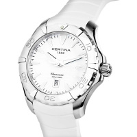 Корпус: Нержавеющая сталь. Сапфировое стекло с антибликовым покрытием. Белый циферблат, стальные стрелки и часовые индексы. Вращающийся безель. Диаметр 34,3 мм. Водонепроницаемость 300 метров.