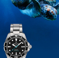 Корпус: Корпус из полированной/матовой нержавеющей стали. Люминесцентное покрытие на стрелках и разметке, однонаправленно вращающийся безель из анодированного алюминия, завинчивающаяся задняя крышка с логотипом Sea Turtle Conservancy, в виде черепахи.Сапфировое стекло антибликовое покрытие стекла, черный циферблат. Диаметр 43 мм. Водостойкость 300 м. Система DS.
