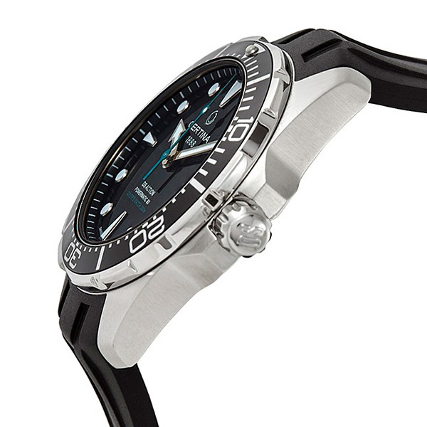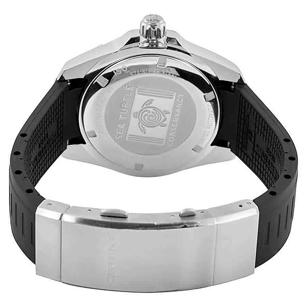 Корпус: Нержавеющая сталь. Люминесцентное покрытие на стрелках и разметке, однонаправленно вращающийся безель из анодированного алюминия, завинчивающаяся задняя крышка с логотипом Sea Turtle Conservancy, в виде черепахи. Сапфировое стекло антибликовое покрытие стекла, черный циферблат. Диаметр 43 мм. Водостойкость 300 м. Система DS.