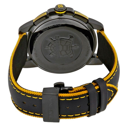 Корпус: Нержавеющая сталь + PVD покрытие черного цвета. Желтые цифры, метки и стрелки с люминисцентным светонакопителем. Сапфировое стекло с антибликовым покрытием. Черный циферблат. Диаметр 42 мм. Водонепроницаемость 100 метров.