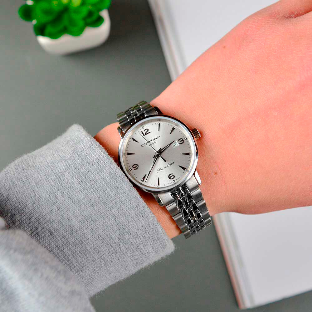 Корпус: Корпус из полированной/матовой нержавеющей стали. Сапфировое стекло, серебристый циферблат. Диаметр 28 мм. Водостойкость 100 м. Система DS.