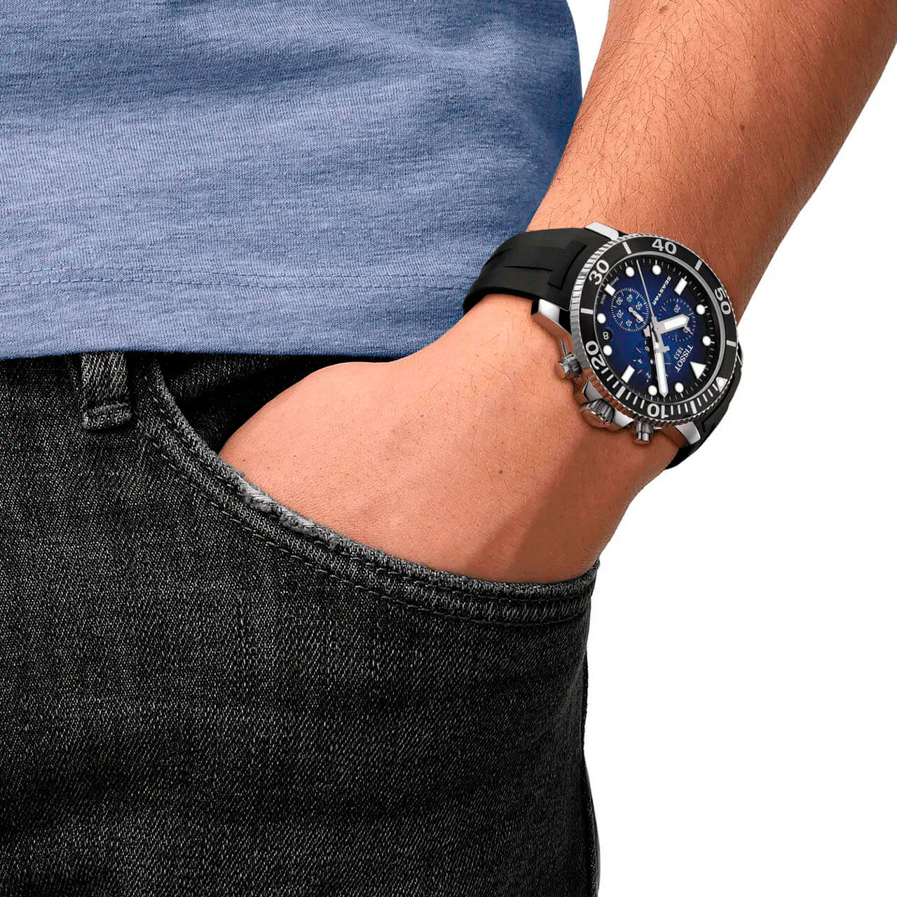 Корпус: Корпус из нержавеющей стали 316L. Рифленый алюминиевый вращающийся в одном направлении чёрный безель с минутной шкалой. Циферблат синего цвета. Метки и стрелки с люминесцентным покрытием SuperLuminova, которое светится в темноте. Сапфировое стекло с двусторонним антибликовым покрытием, устойчивое к появлению царапин. Рифленая заводная головка. Завинчивающиеся заводная головка и задняя крышка корпуса. Диаметр 45 мм. Водостойкость 300 м.