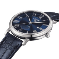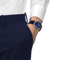 Корпус: Корпус выполнен из высококачественной стали с повышенной устойчивостью к коррозии, поверхности полировкой до зеркального блеска. Циферблат выполнен по технологии Sunray (солнечные лучи) синего цвета с логотипом Tissot. Узкие листовидные стрелки в стиле Feuill и часовые индексы в виде римских цифр выполнены из стали. Сапфировое стекло с антибликовым покрытием, устойчивое к появлению царапин, обладающее высокой прозрачностью. Рифленая заводная головка с логотипом. Диаметр корпуса составляет 40 мм. Водонепроницаемость: 50 м.