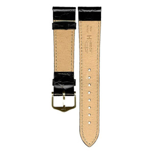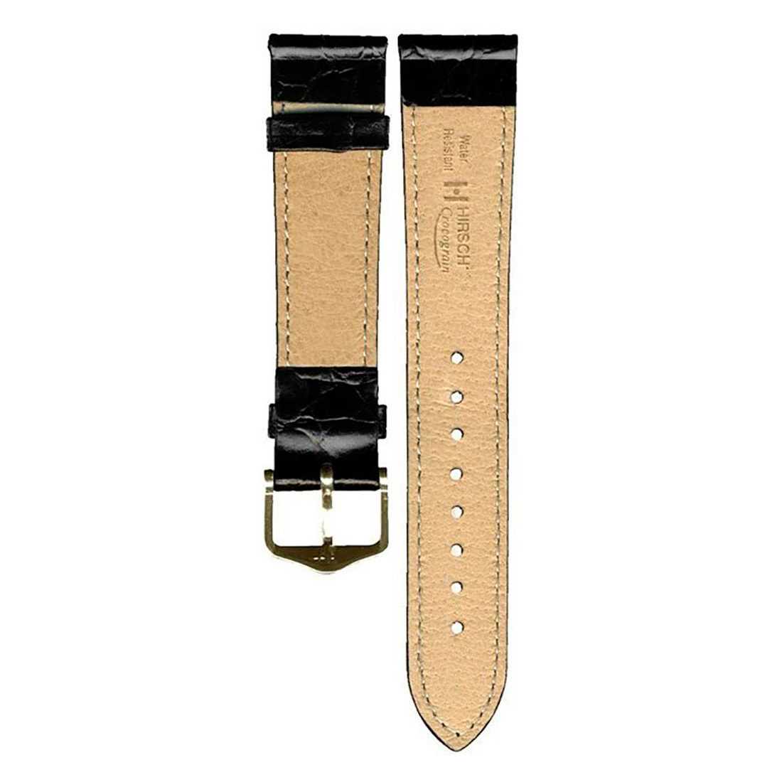 Описание: Классический ремешок из натуральной телячьей кожи, имитирующей глянцевую кожу крокодила с тонким швом в тон. Ремешок выполнен по технологии Ремборде - бесшовное соединение верхней и нижней подкладочной кожи, что гарантирует оптимальную защиту от внешнего воздействия и долговечность. Подкладочная кожа HIRSCH Softglove. Легкая набивка. Цвет - чёрный.