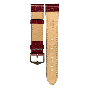 Описание: Классический ремешок из натуральной телячьей кожи, имитирующей глянцевую кожу крокодила с тонким швом в тон. Ремешок выполнен по технологии Ремборде - бесшовное соединение верхней и нижней подкладочной кожи, что гарантирует оптимальную защиту от внешнего воздействия и долговечность. Подкладочная кожа HIRSCH Softglove. Легкая набивка. Цвет - бордовый.