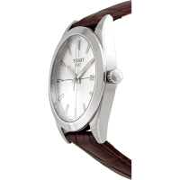 Ремешок: Коричневый ремешок из телячьей кожи с тиснением под аллигатора. Браслетная застежка из нержавеющей стали, раскладывающаяся при нажатии кнопок двойной блокировки.