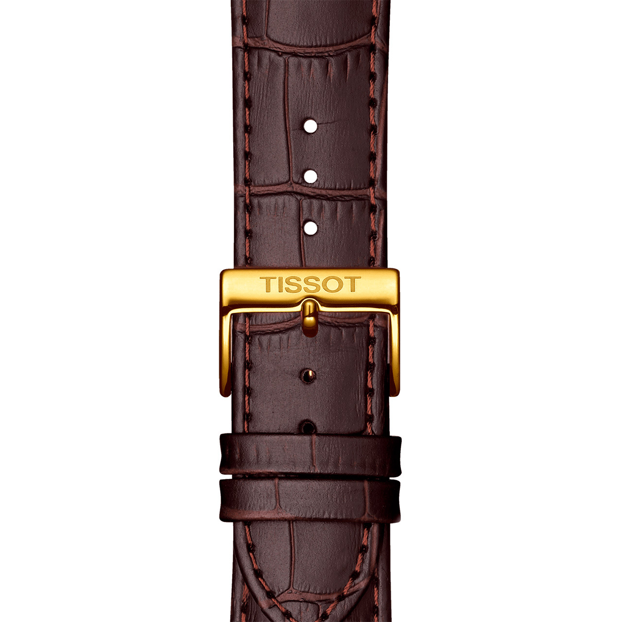 Ремешок: Коричневый ремешок из телячьей кожи с тиснением под аллигатора с классической застежкой.