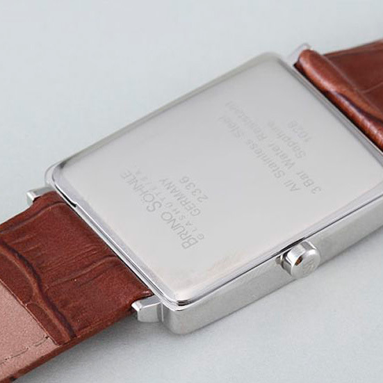 Корпус: Нержавеющая сталь, водостойкость 30 метров, сапфировое стекло с антибликовым покрытием. Размеры корпуса 28,2 х 35,2 мм. Циферблат коричневого цвета.