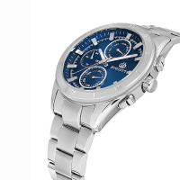 Корпус: Корпус изготовлен из латуни и имеет надёжное износостойкое покрытие серебристого цвета. Циферблат синего цвета выполнен по технологии Sunray (солнечные лучи). Стальные часовые индексы и стрелки. Стрелки с люминесцентным покрытием, которое позволяет легко узнать время даже в условиях низкой освещённости. Прочное минеральное стекло обеспечит защиту часов от повреждений. Диаметр: 44 мм. Водонепроницаемость: 50 м.