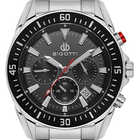 Функции: Индикация часов, минут и секунд при помощи центральных стрелок. Дата, хронограф и текущее время в 24-х часовом формате.