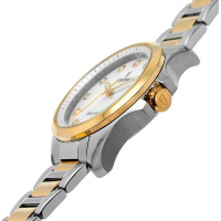 Корпус: Корпус круглой формы выполнен из нержавеющей стали марки 316L. Стойкое PVD покрытие желтым золотом на безеле и переводной коронке. Перламутровый циферблат украшен цирконами. Минеральное стекло. Диаметр корпуса модели составляет 34 мм. Водостойкость 50 метров (5 АТМ).