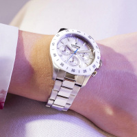 Корпус: Ударопрочный корпус часов сделан из нержавеющей стали. Перламутровый циферблат. Стрелки с нанесенным люминесцентным покрытием, которое светится в темноте после непродолжительной зарядки на свету. Минеральное стекло. Белый керамический безель. Рифленая заводная головка с защитой. Диаметр: 39 мм. Водонепроницаемость: 100 м.