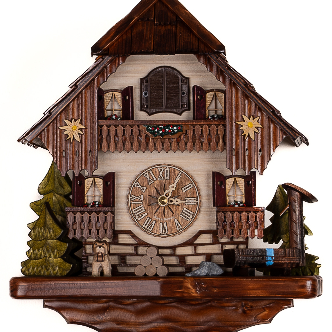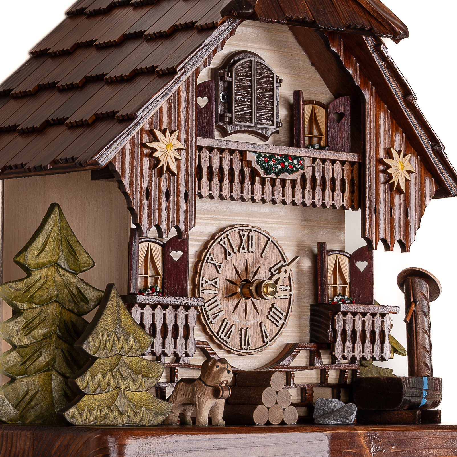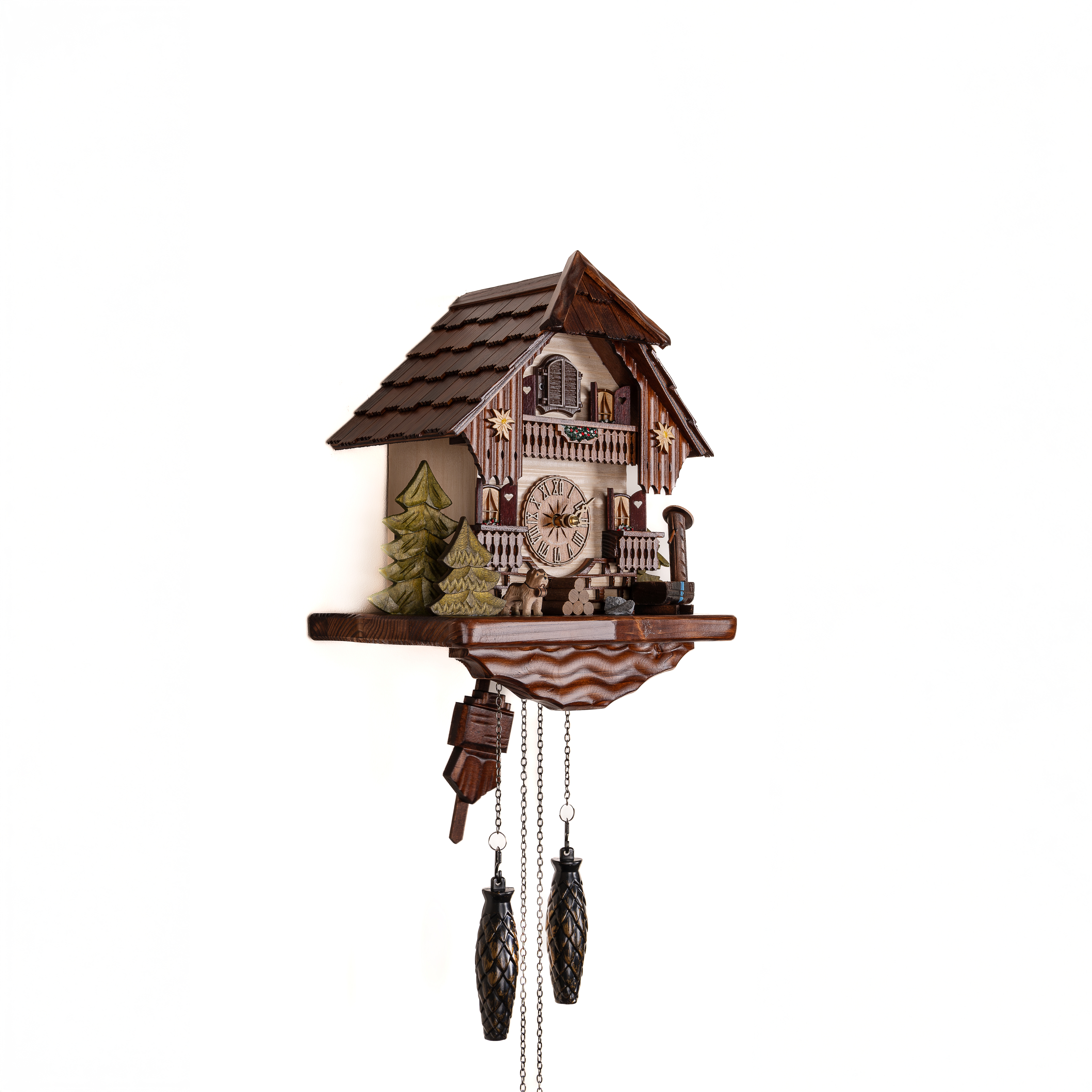 Материал: Натуральное дерево. Дом в стиле Шале. Декоративная резьба. Деревянная черепица. Деревянный циферблат часов. Деревянная кукушка.