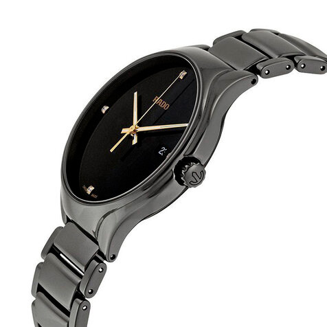 Корпус: Круглый керамический корпус c гладкой поверхностью чёрного цвета. Матовый чёрный циферблат украшен накладными метками с бриллиантами. Узкие заостренные прямоугольные стрелки в стиле Baton с люминесцентным покрытием по технологии SuperLumiNova®. Сапфировое стекло с антибликовым покрытием. Диаметр 40 мм. Водостойкость 50 м.