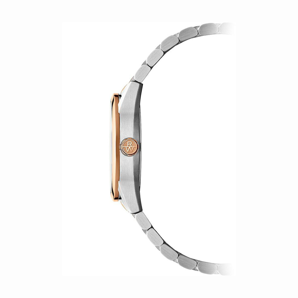 Ремешок: Браслет из высококачественной стали с 5 рядами литых звеньев, центральный ряд звеньев с золотым покрытием. Браслетная застежка, раскладывающаяся при нажатии на кнопки с двойной системой блокировки, украшена гравировкой Raymond Weil.
