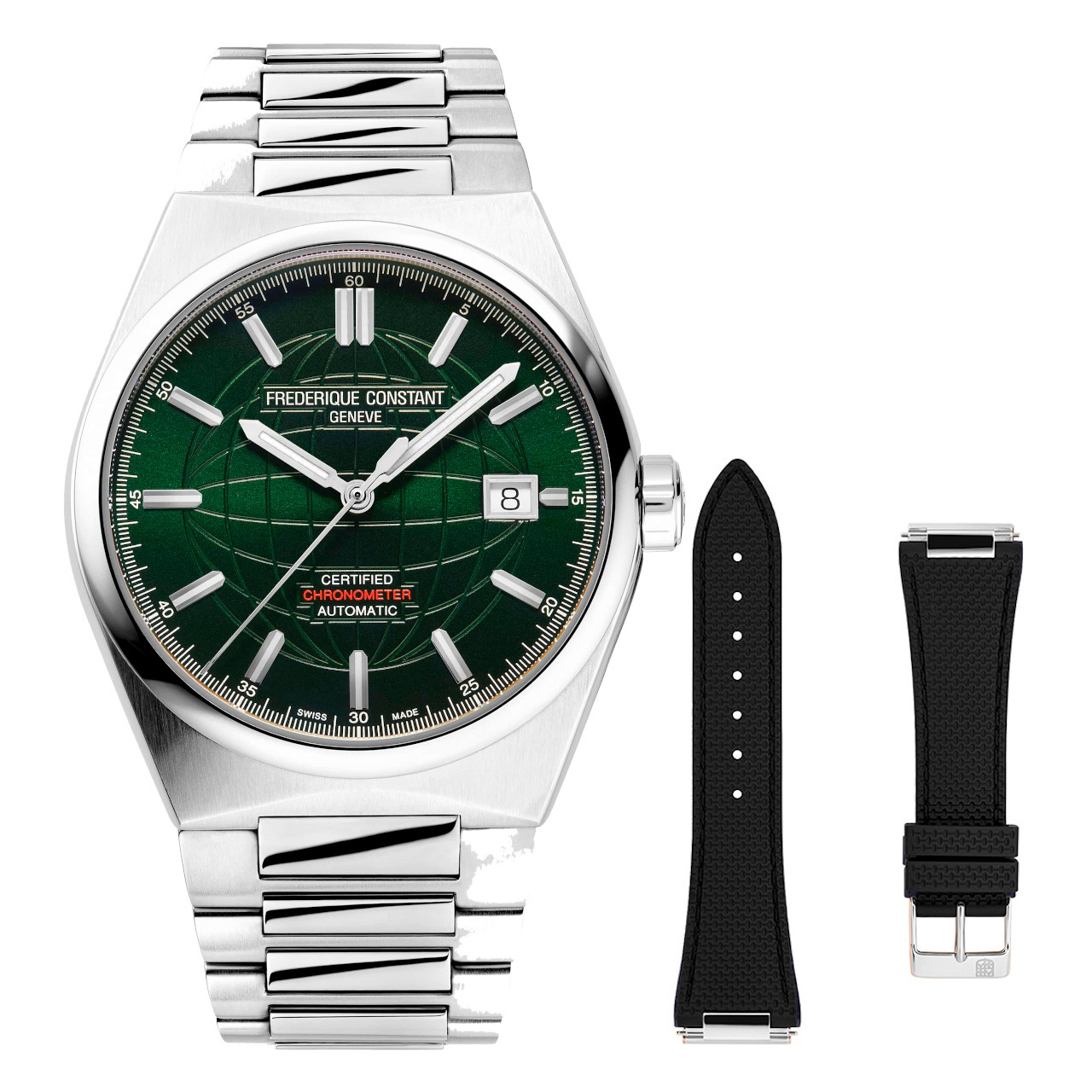 Механизм: Швейцарский механизм FC-303 с автоматическим подзаводом создан имеет запас хода 38 часов, частота колебаний баланса 28 800 пк/час (4Hz), 26 рубинов в качестве камневых опор колесной системы и палет анкерного спуска. Точность хода механизма часов линейки отрегулирована в соответствии с сертификатом C.O.S.C.