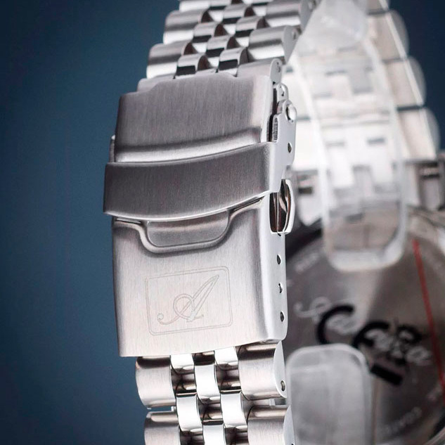 Ремешок: Браслет выполнен из нержавеющей стали. Браслетная раскладывающаяся застежка с дополнительным защитным фиксатором, гравировка с названием марки и ее эмблема.
